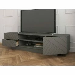Modern Contemporary Simple Wood Storage Console TV Stand for TVs up to 65″ – Saracina Home Gray