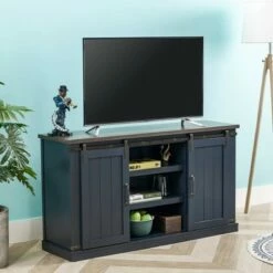 Sliding Doors Electric Fireplace TV Stand for TVs up to 60" Antique Gray Oak – Home Essentials