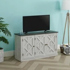 TV Stand for TVs up to 50" Saw Cut Off White – Home Essentials