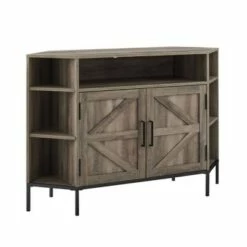 Atticus Modern Farmhouse 2 Door Corner TV Stand for TVs up to 55″ – Saracina Home Rustic Oak