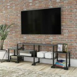 Clarabelle Farmhouse Glass Barn Door TV Stand for TVs up to 65″ – Saracina Home Stone Gray