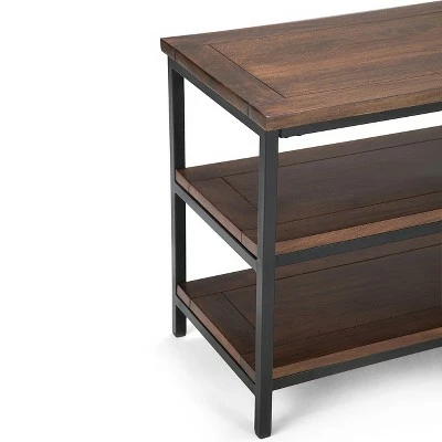 - Feature two (2) large open shelves & black metal frame and Legs