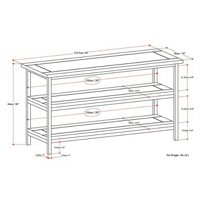 - Dimensions (Overall): 26 Inches (H) x 60 Inches (W) x 18 Inches (D)