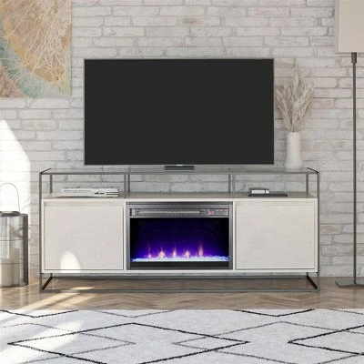 - Add some modern ambiance to your living room with The Creswell Modern TV Stand and Console with Electric Fireplace for TVs up to 65″”