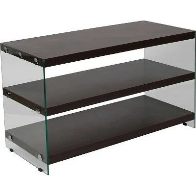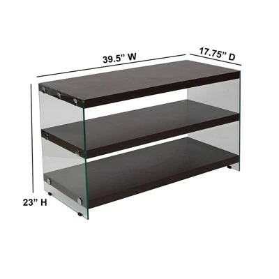 Elevate your media room with this sharp looking TV Stand with Glass Frame. This TV stand is the definition of modern living, with the glass frame being the star of the show. The glass sided stand provides you with an uncluttered view. Its modern open shelved structure with 8″ of spacing allow you to display your game consoles, media players and cable boxes openly without infrared interference. Prominently display your 40″ Flat Screen on this gorgeous stand that’ll serve as an attraction piece on its own.