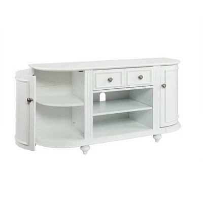 - Features 1 drawer, 2 adjustable media shelves, and 2 truncated side cabinets with 1 fixed shelf each