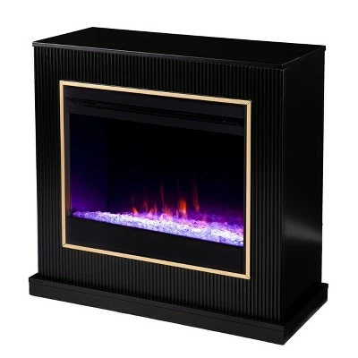Your space gets a modern upgrade with the Aiden Lane Stallamp Color Changing Electric Fireplace. Gold trim surrounds the electric firebox, adding a sleek, contemporary feel to your living room or dining area. Color changing flames reflect off the faux crystal fill, while remote-controlled features let you enjoy cozy ambiance all year long, with or without heat. Elevate your home design when you add this contemporary electric fireplace to your space.