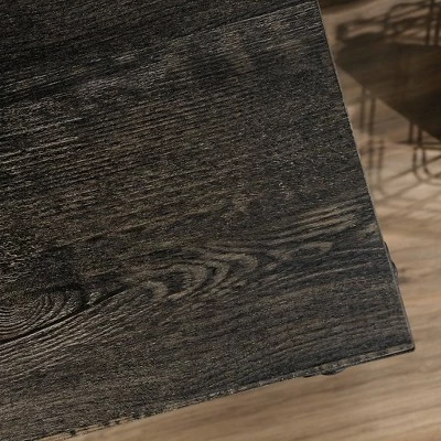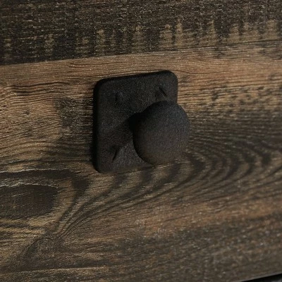 Beautify your living room or entertainment space with the industrial-inspired style and design of this TV stand from the Steel River collection. This media console accommodates up to a 55” TV, making it the perfect spot to gather around with friends to binge watch your favorite show, have all-day movie marathons or play endless hours of video games. This media cabinet features two drawers that open and close on smooth metal runners for easy access storage of miscellaneous items like magazines and the TV remote. This TV stand also features spacious open shelving for storage and display of items like board games, picture frames, knick-knacks and organizing bins. It features a textured, powder coated metal frame with corner accents. It also features non-rolling fixed casters for an extra touch of detail. This industrial TV stand is finished on all sides for versatile placement throughout your home. Finished in Carbon Oak, this stunning entertainment stand will give your home a fresh new look.