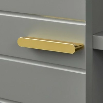 Channel your inner Mid-century style with the need to have Tabaria TV Stand by Lifestorey. A distinctive grooved pattern is etched on the front door panels lending a vintage type of vibe. Ideal space not only for your TV but also for housing A/V media pieces, along with additional room for storing streaming devices, video games, movies and more. Two back side grommet holes allow for easy cord management for all your equipment. Constructed of durable MDF in a neutral gray finish, this cabinet is tastefully accented with gold-tone metal handles and legs. Can accommodate up to 55” TV’s.