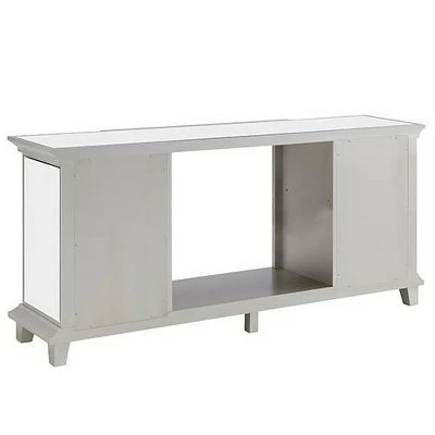 Live the fancy life with the Aiden Lane Tappington Mirrored Fireplace Media Console w/ Alexa. Mirrored panels and a silver finish give this smart media fireplace a high-end glam look, and two storage cabinets hold everything from DVDs to remotes. Voice-enabled Alexa technology allows for seamless control from anywhere in the room, while flickering LED flames and faux fire logs glow beneath a spacious tabletop, creating ambiance throughout your space, with or without heat. Add this mirrored electric fireplace to your living room or open concept living space for high-class style and cozy heat that lasts all year long.