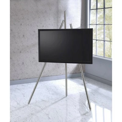 Tripod TV Stand, use VESA 400×600 mounting standard ( up to 75″). Contemporary design, ideal for cornor placement. Brush nickel steel bar provide an elegant look for your home. Dimension 48″ W x 26″ D x 65″ H.