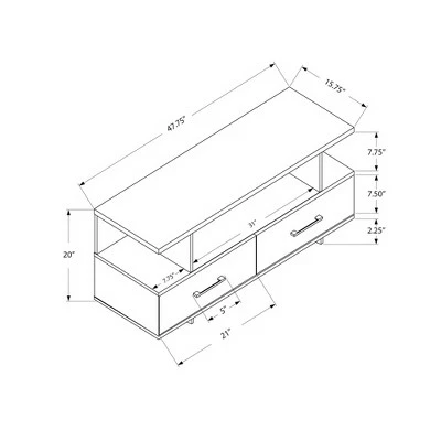 - Dimensions (Overall): 20 Inches (H) x 47 Inches (W) x 15.75 Inches (D)
