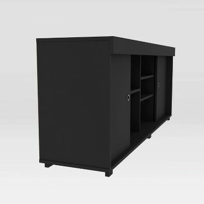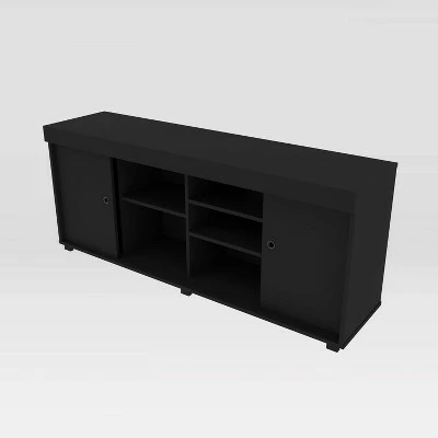 Elevate your Living room or bedroom with this grounded yet sophisticated TV unit. Adding a modern-contemporary touch to you entertainment space. Its versatility is unmatched with the options of colors ranging from black, white and even walnut. Emphasized by its earthy finish and clean-lined design, features 3 open shelves to organize your media accessories as well as 2 side storage spaces with additional closed door storage. It includes 2 openings for easy cable management and electronics ventilation. Made of sturdy particle board with painted surface. It fits a TV of up to 75 inches.