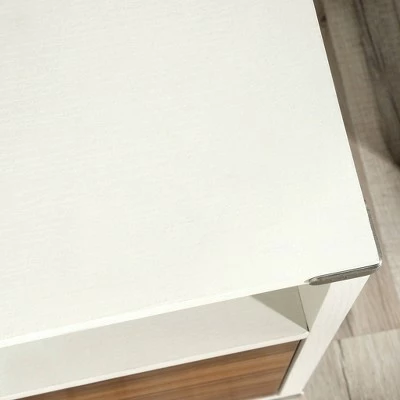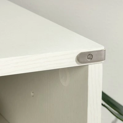 Bring your love for coastal-inspired style and design right into the center of your home with this credenza from the Vista Key collection. This TV stand accommodates up to a 60″ TV, making it the perfect spot to gather around for all-day movie marathons or binge watching your favorite show. This TV credenza features three large cubbies that are ideal for holding audio/video equipment, stacks of books, and all your favorite knick-knacks. This console also features an adjustable center shelf that has the ability to move to different heights to create flexible storage for items of all shapes and sizes. Behind each door is a hidden storage area that includes an adjustable shelf for convenient storage of items you prefer not be seen lying around. This credenza is accented with metal corner brackets and decorative hardware giving it a look that is sure to stand out in your home. Finished in Pearl Oak with Blaze Acacia accents, this beautiful entertainment credenza will be the center of attention in your home.