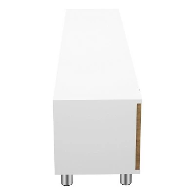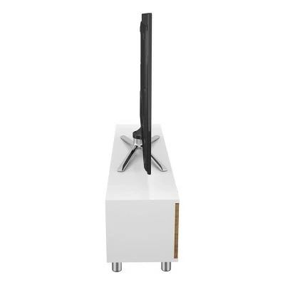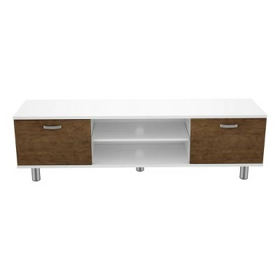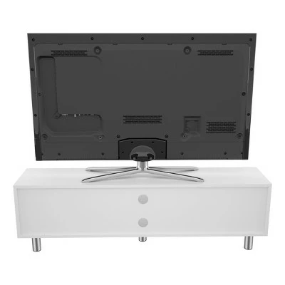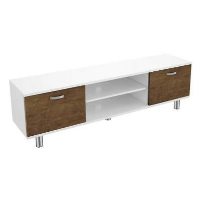 AVF FS1500MAHW-A (Omaha) is a fashionable, ready to assemble TV Stand in white finish with walnut doors. The stand supports a TV up to 110 lbs., as well as AV components up to 11 lbs. on each lower shelf. The shelves are great for a Cable Box, Receiver, DVR, Blu-ray player, Game Console, Speaker, Apple TV, Sonos devices, or décor items. Installation is kept neat via the built-in cable management holes on the back panel. This easy to assemble stand accommodates most TVs in these sizes: 32 inch, 37 inch, 39 inch, 40 inch, 42 inch, 46 inch, 47 inch, 50 inch, 52 inch, 55 inch, 58 inch, 60 inch, 65 inch. Assembled dimensions: 59.06-inches (width) x 13.78-inches (depth) x 16.97-inches (height). IMPORTANT: For TVs with wide-spread feet, please measure the TV base to assure fit on this TV stand. To eliminate this problem. replacement pedestal style TV bases are available separately.