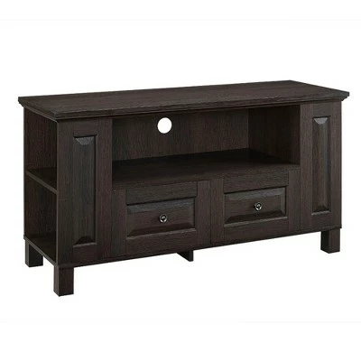 Perfect for your home entertainment, this 44″ wood media console supports TVs up to 48″. Features two storage drawers for remotes, controllers and side media storage for DVDs and CDs. Its open front shelf offers the perfect space for your components with a built in cable management system to help you maintain a tidy space.